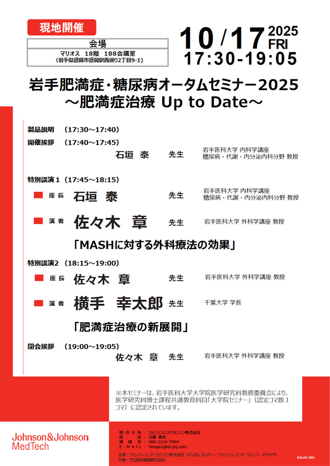 いわて肥満症・糖尿病オータムセミナー2025 ~肥満症治療Up to Date~ 開催告知:2025年10月17日(金)